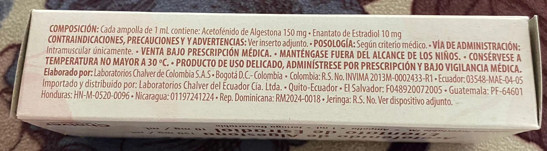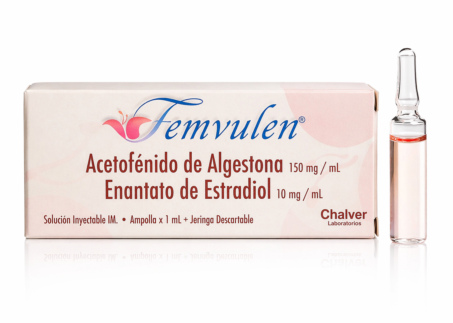 Anticonceptivo inyectable. Dosificación: 1 ampolla de FEMVULEN® se administra mediante inyección intramuscular profunda entre el séptimo y el décimo día del ciclo menstrual, preferiblemente en el día octavo. Se debe tener cuidado de aspirar todo el contenido de la ampolla e inyectar sin pérdidas.